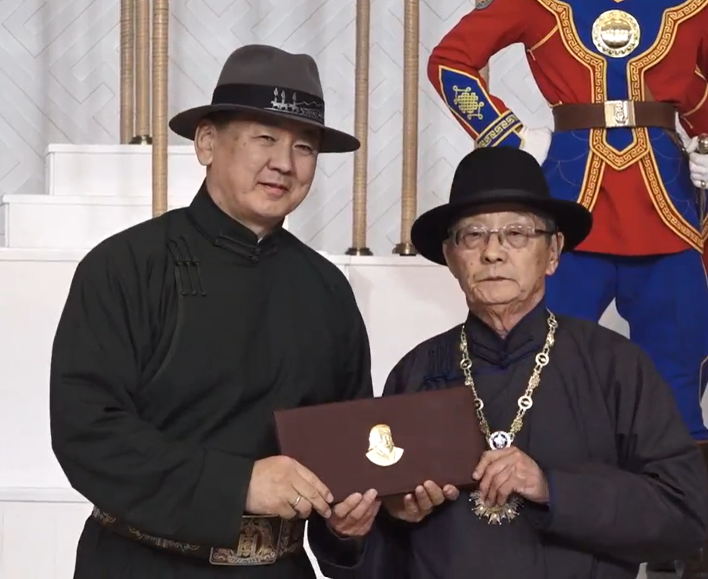 Эзэн Богд Чингис хааны мэндэлсний 863 жилийн ой, “Монгол бахархлын өдөр”-ийг тохиолдуулан Монгол Улсын Ерөнхийлөгч У.Хүрэлсүх “Чингис хаан” тэргүүн зэргийн одонг академич С.Нарангэрэлд хүртээлээ.