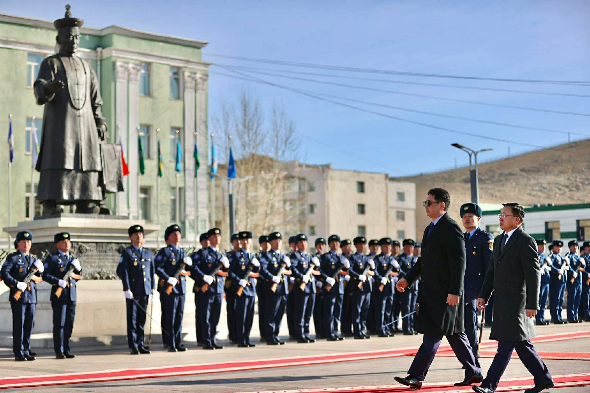 Монгол Улсын Ерөнхийлөгчийг Жалханз хутагт Ц.Дамдинбазарын нэрэмжит төв талбайд хүрэлцэн ирэхэд Улиастай цэргийн хүрээний хүндэт харуул угтаж авлаа.