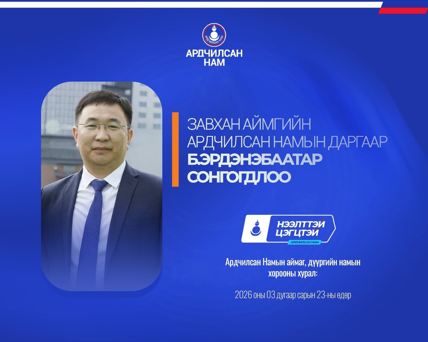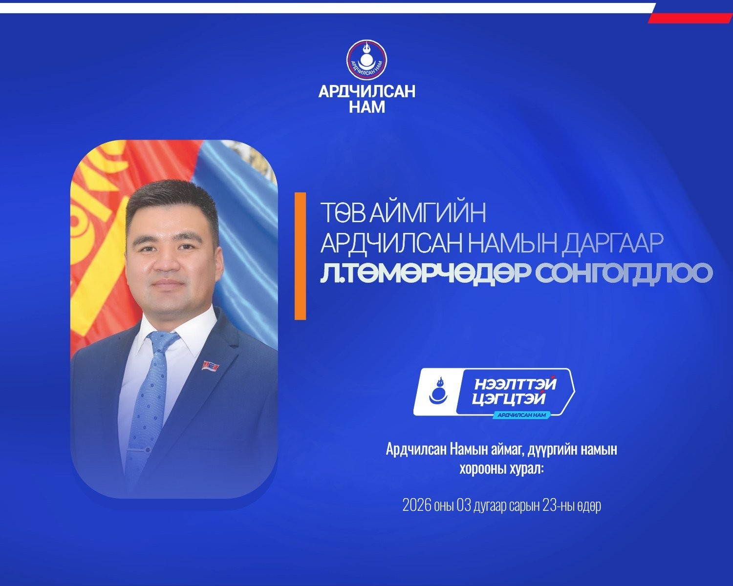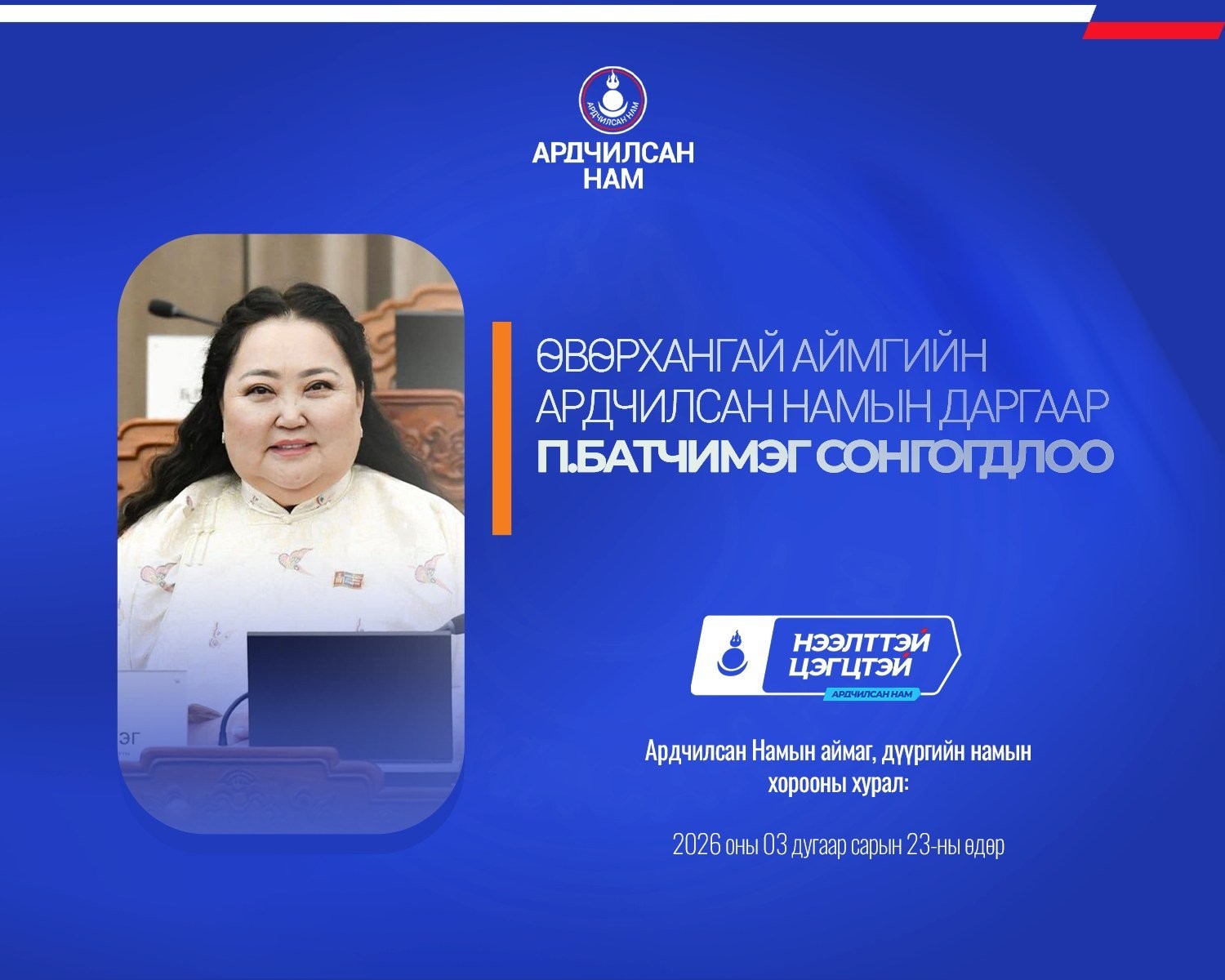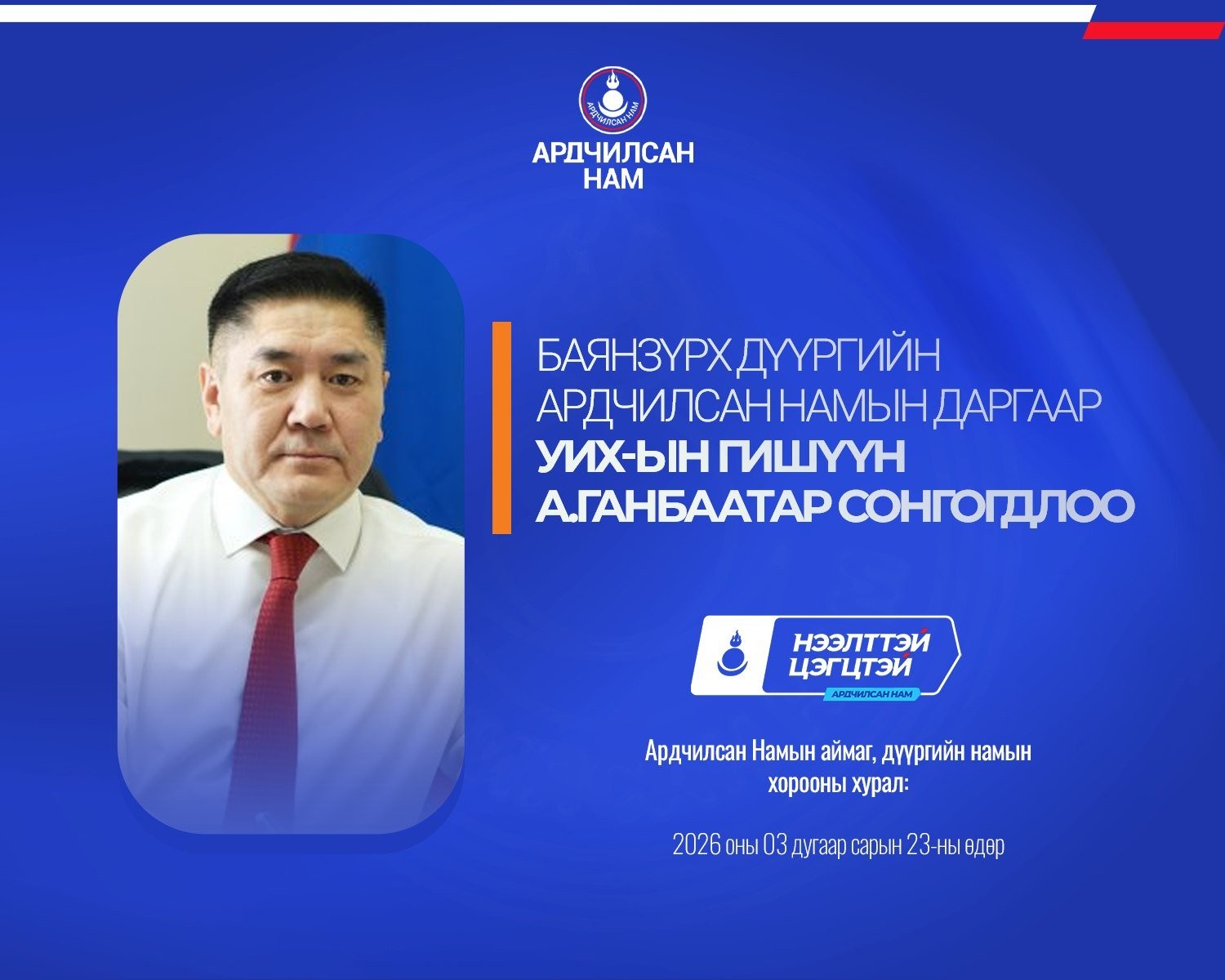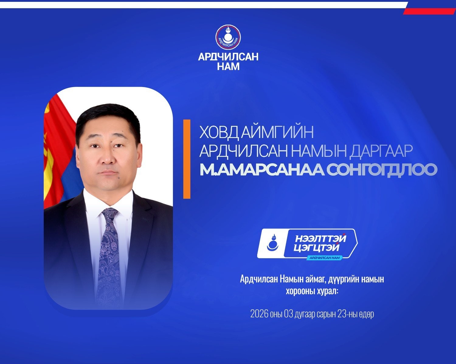Ардчилсан Намын аймаг, дүүргийн намын хороодын ээлжит хурал 2026 оны гуравдугаар сарын 23-ны өдөр улс орон даяар амжилттай зохион байгуулагдлаа.