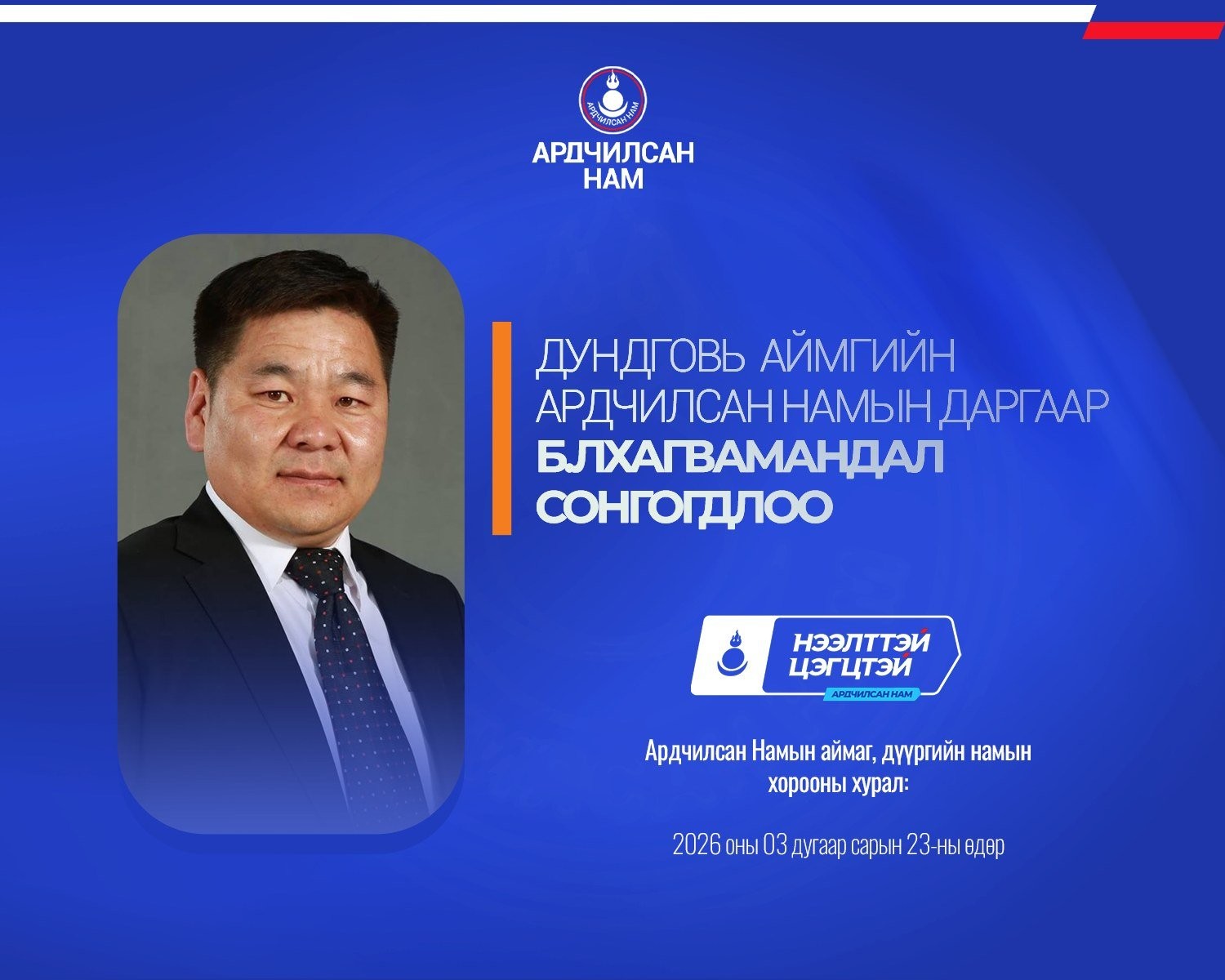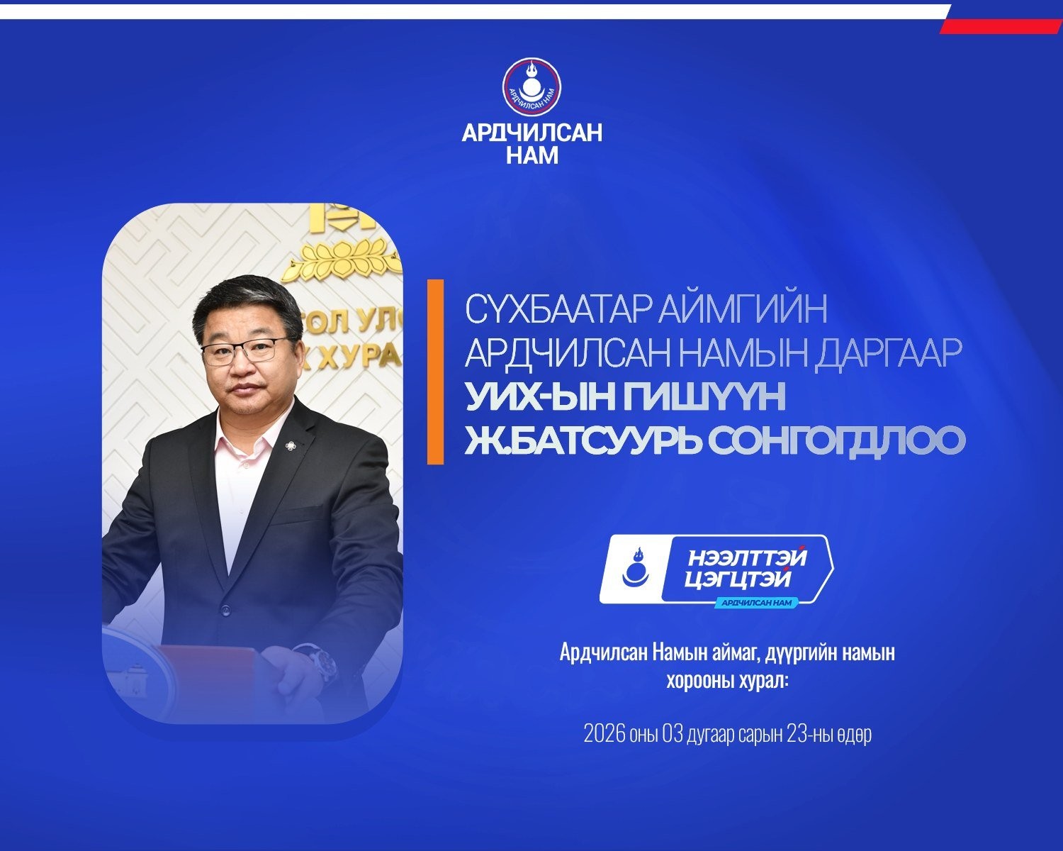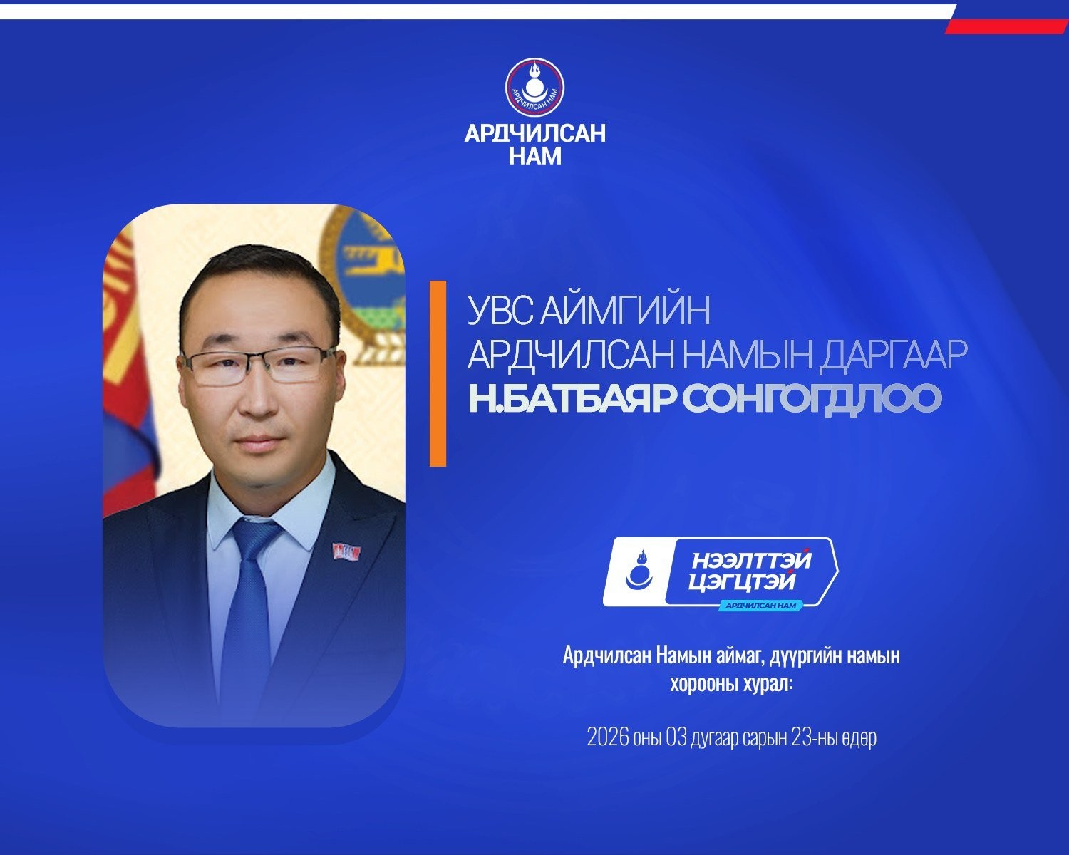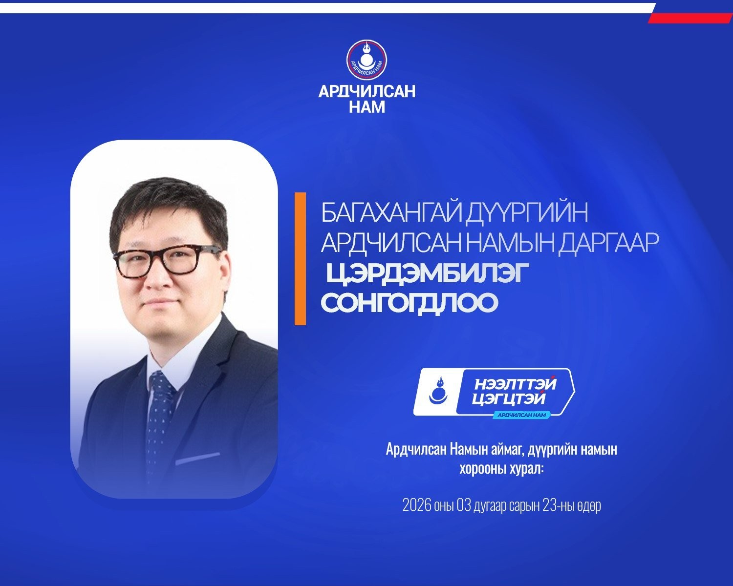 Ардчилсан Намын аймаг, дүүргийн намын хороодын ээлжит хурал 2026 оны гуравдугаар сарын 23-ны өдөр улс орон даяар амжилттай зохион байгуулагдлаа.