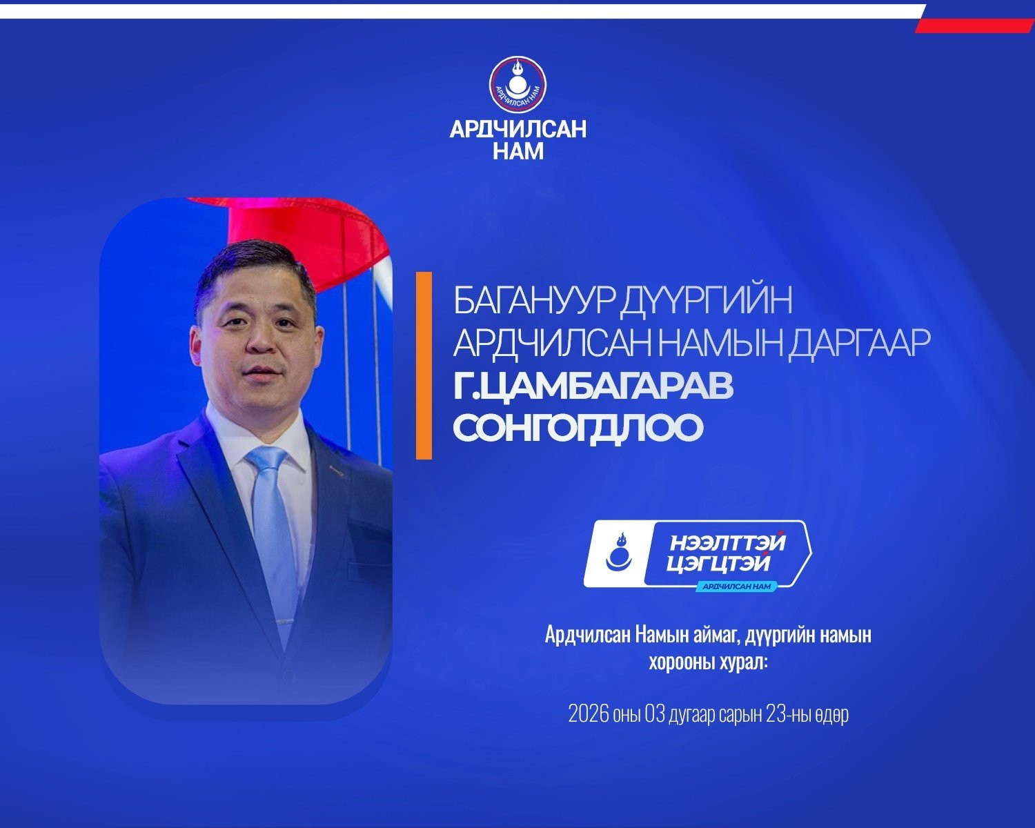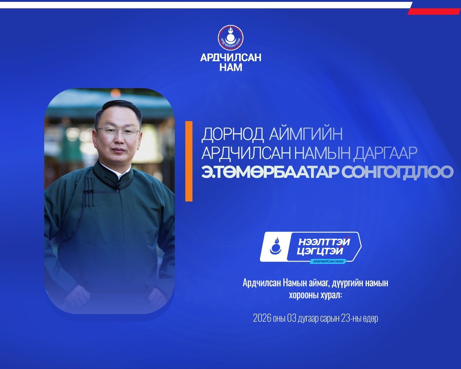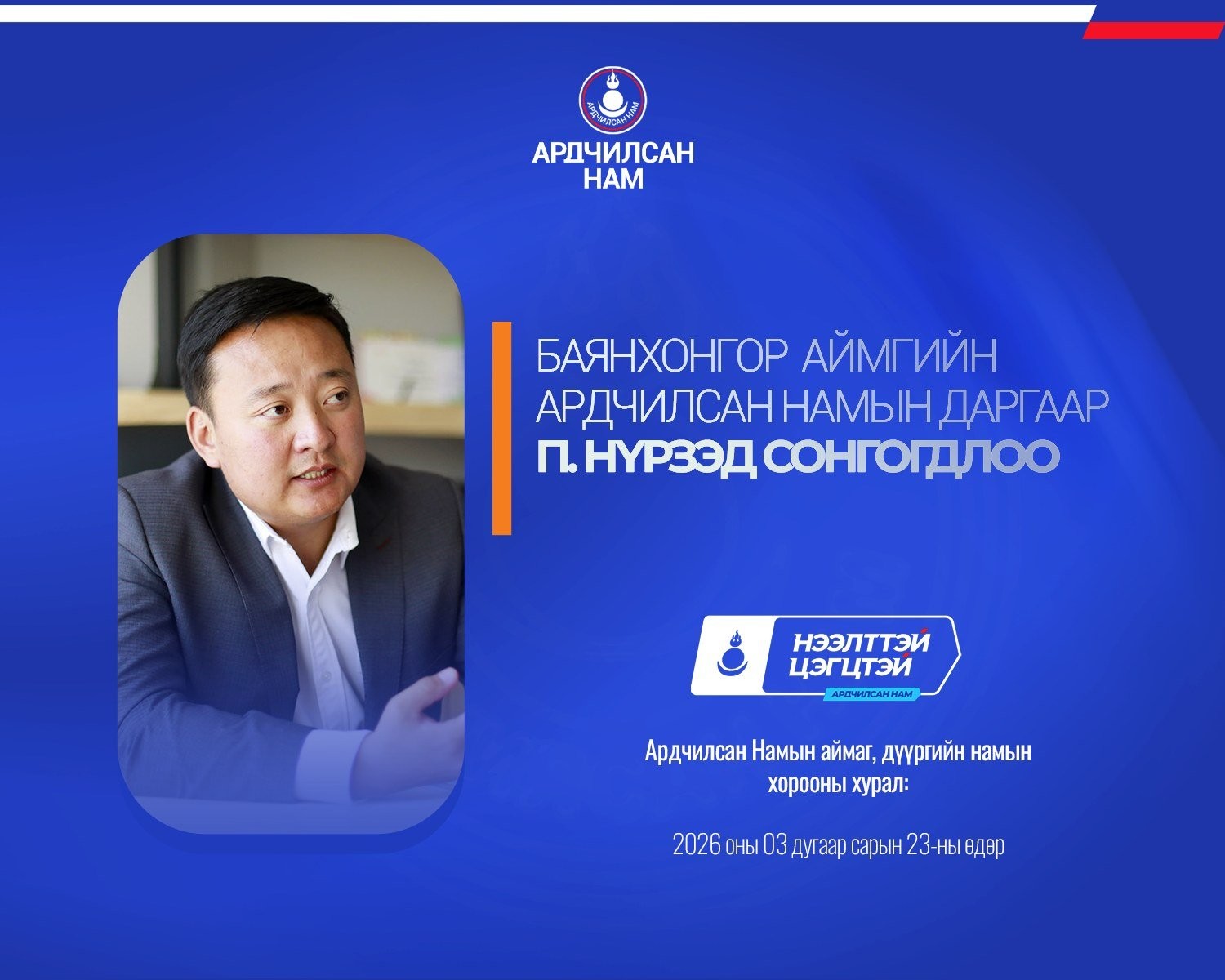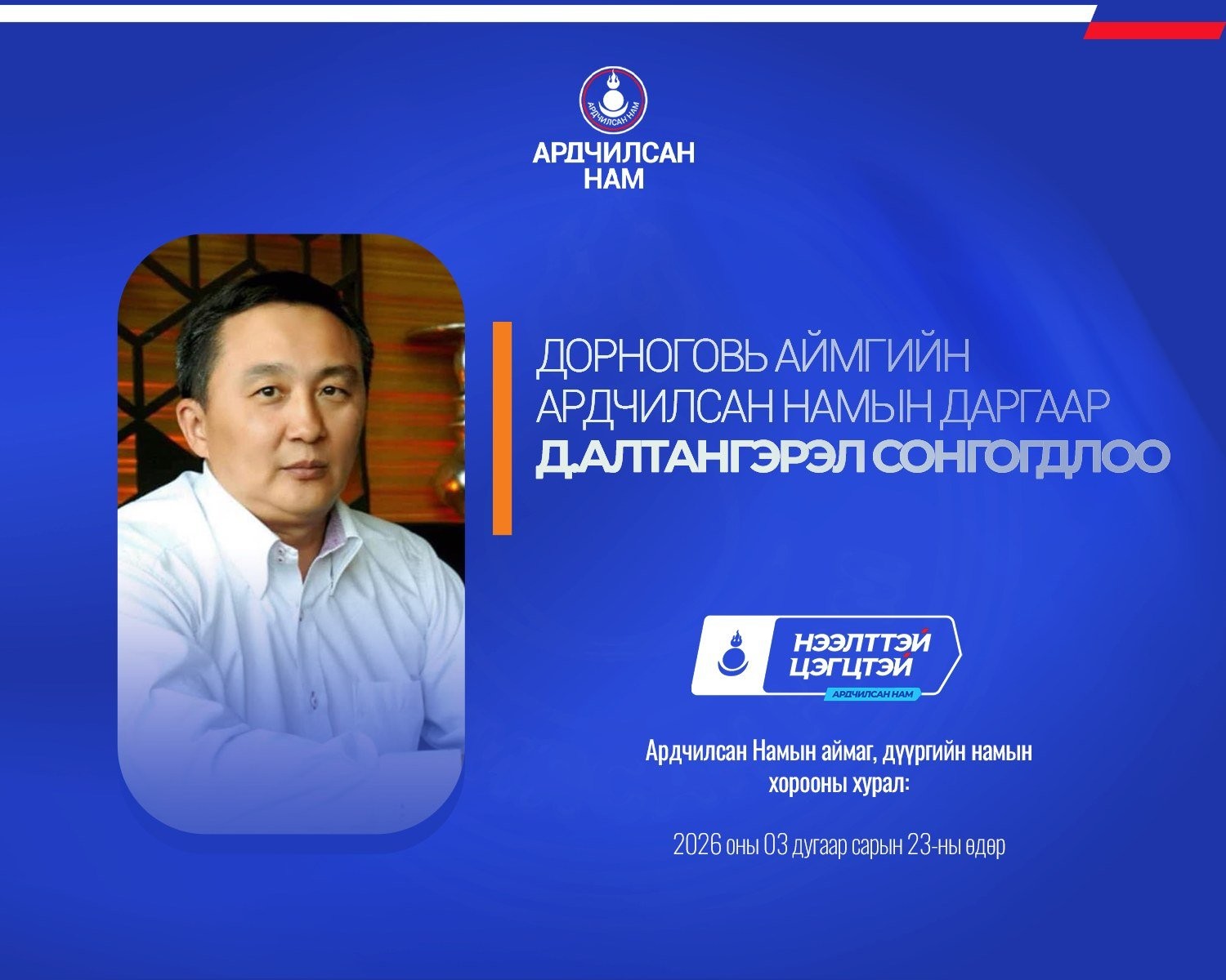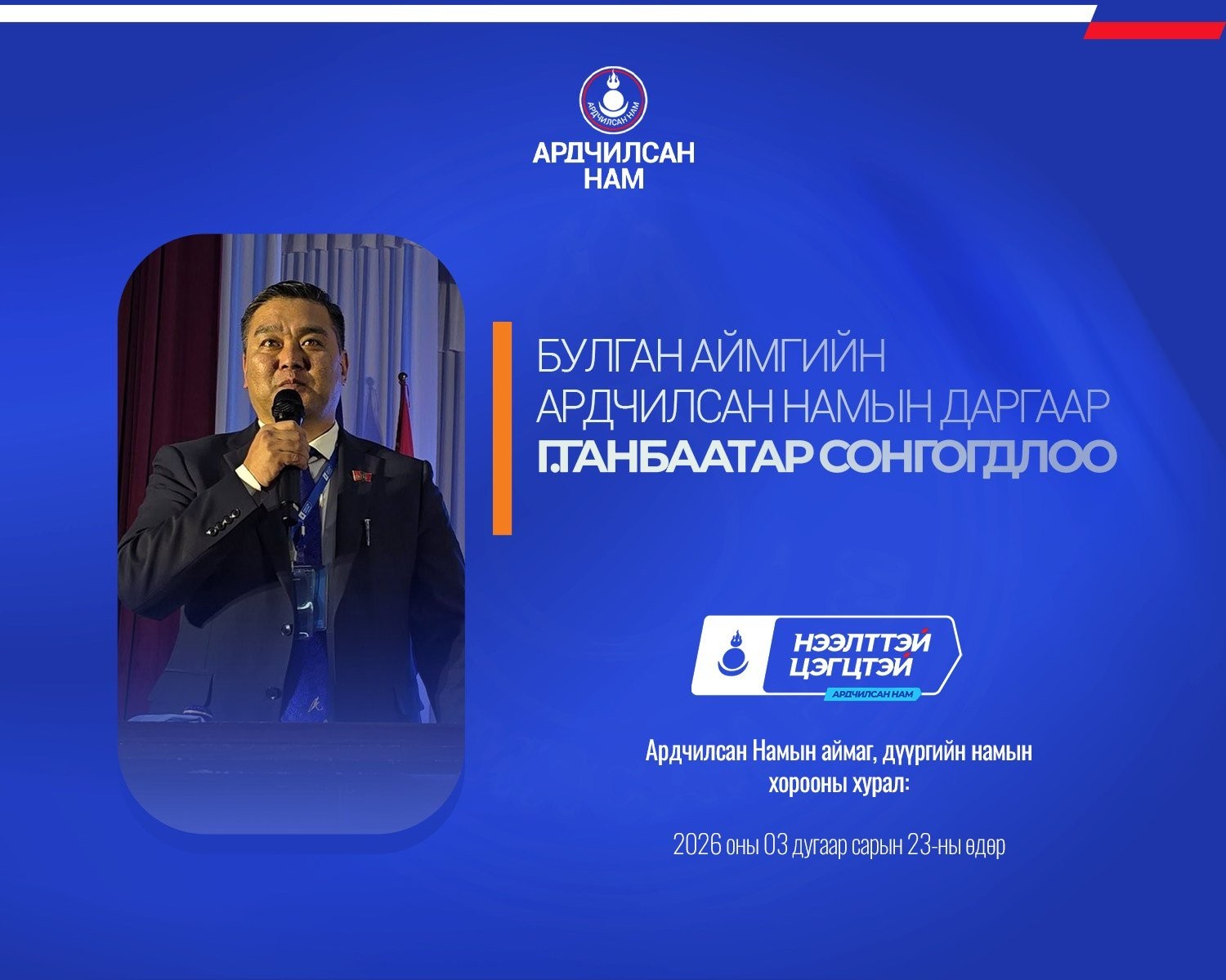 Ардчилсан Намын аймаг, дүүргийн намын хороодын ээлжит хурал 2026 оны гуравдугаар сарын 23-ны өдөр улс орон даяар амжилттай зохион байгуулагдлаа.