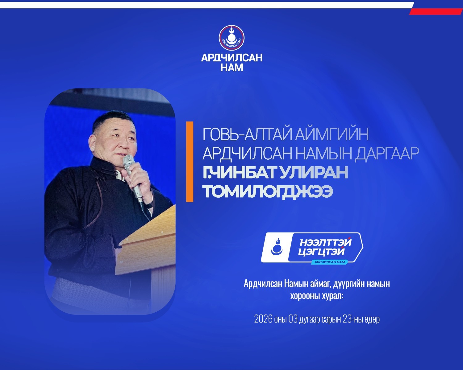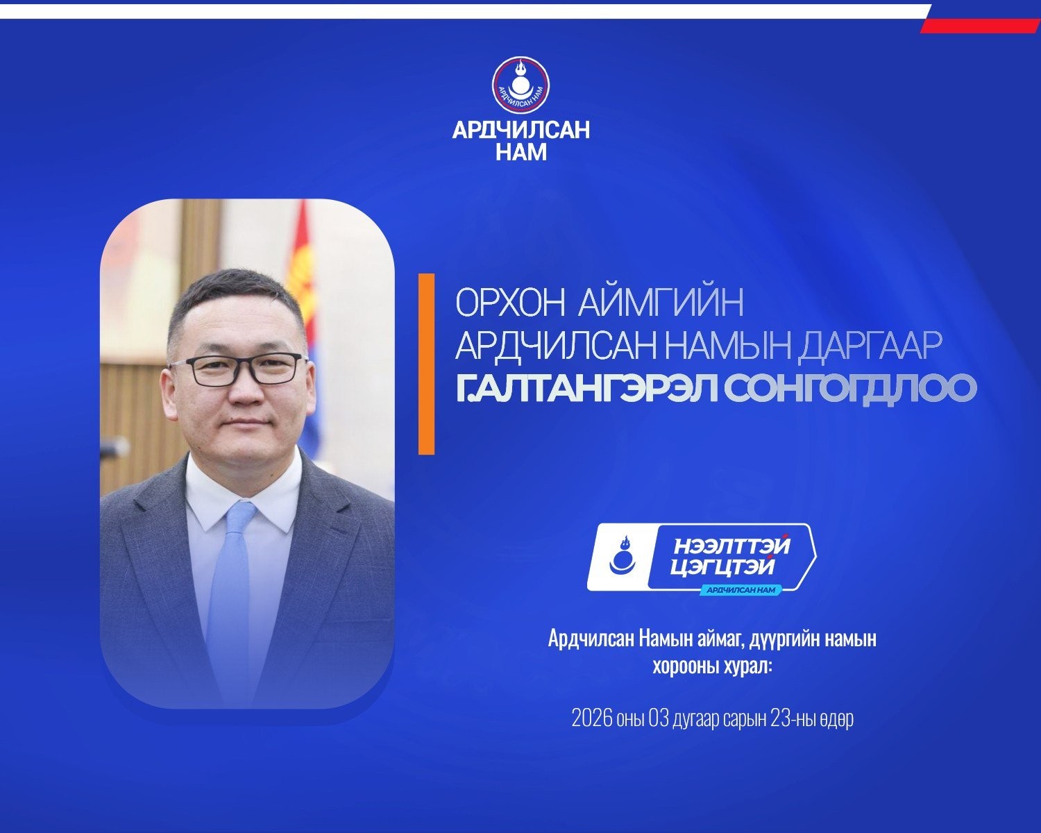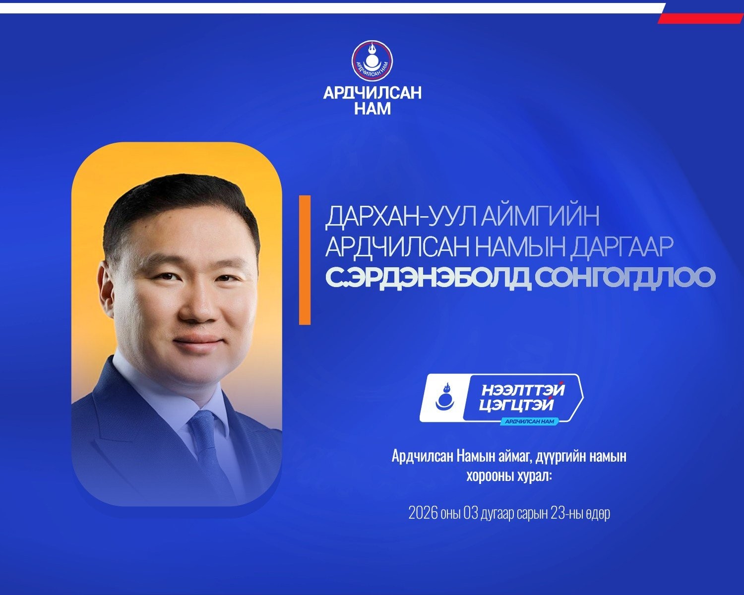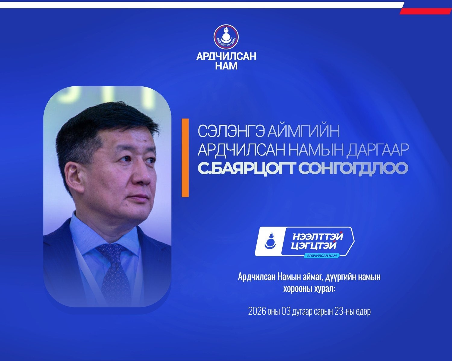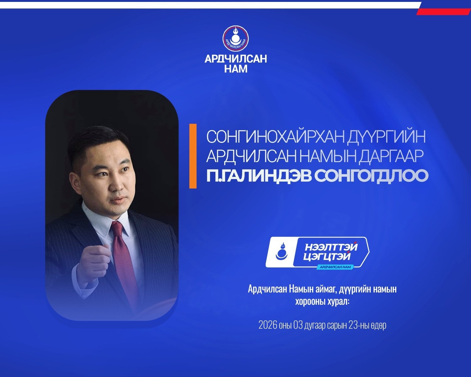 Ардчилсан Намын аймаг, дүүргийн намын хороодын ээлжит хурал 2026 оны гуравдугаар сарын 23-ны өдөр улс орон даяар амжилттай зохион байгуулагдлаа.