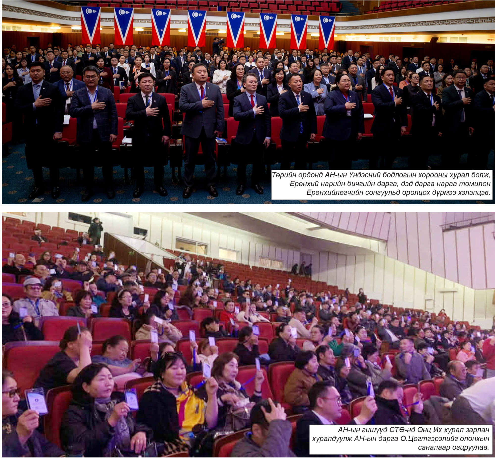 Хуралдааныг УИХ-ын гишүүн Ц.Туваан, Б.Жаргалан, Үндэсний бодлогын хорооны гишүүн Б.Отгонбат нар даргалан явуулав. Хурлаар ҮБХ-ны гишүүдийн бүрэн эрхийг батламжилж, Улс төрийн зөвлөлийн 2026 оны дөрөвдүгээр сарын 07-ны өдрийн хурлаас санал болгосон ҮБХ-ны хуралдаанаар хэлэлцэх асуудлыг танилцуулж батлуулав. Дугаар шилжих мөчид АН-ын ҮБХ-ны хурал Төрийн ордонд үргэлжилж томилгоотой холбоотой асуудлаа хэлэлцэж байв. Ерөнхий нарийн бичгийн дарга, дэд дарга нарыг сонгох бөгөөд дэд дарга нарыг сонгох үйл явц өрнөж байсан юм. АН-ын дэд даргад УИХ-ын гишүүн Ц.Мөнхбат, П.Мөнхтулга, Ч.Лодойсамбуу нарын хүмүүс өрсөлдөж байгаа гэсэн мэдээлэл гарсан. Харин АН-ын Ерөнхий нарийн бичгийн даргаар ЗГХЭГ-ын дарга асан Сэлэнгэ аймгийн АН-ын дарга С.Баярцогтыг сонгохоор талууд тохирсон гэх мэдээлэл ч байсан юм. ҮБХ-ны хуралдаан хаалттай болсон юм.